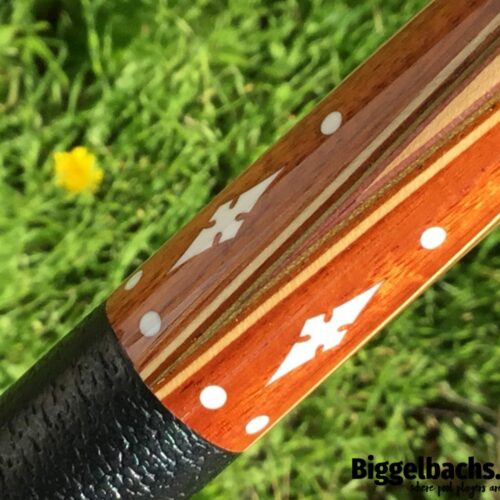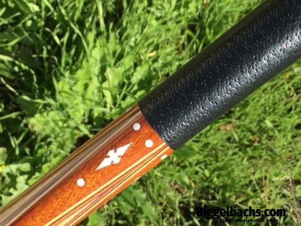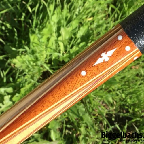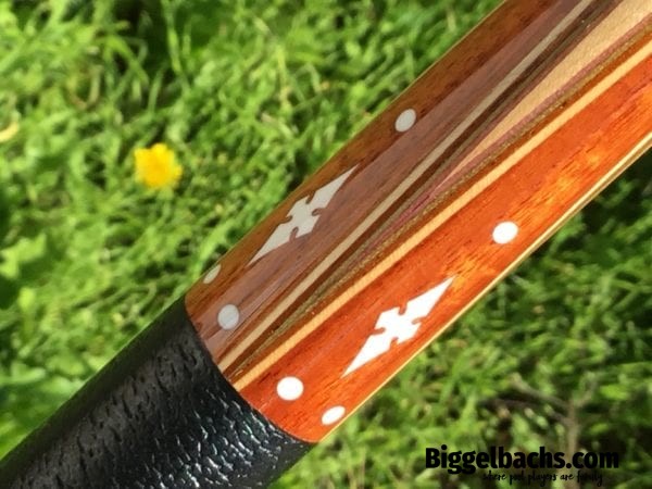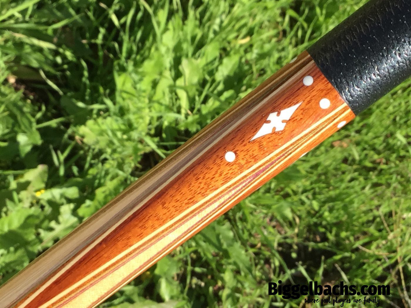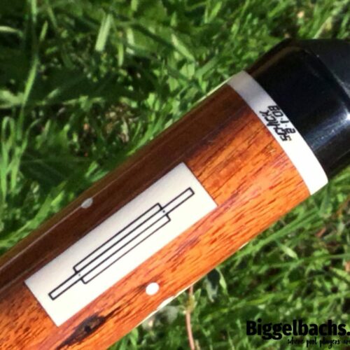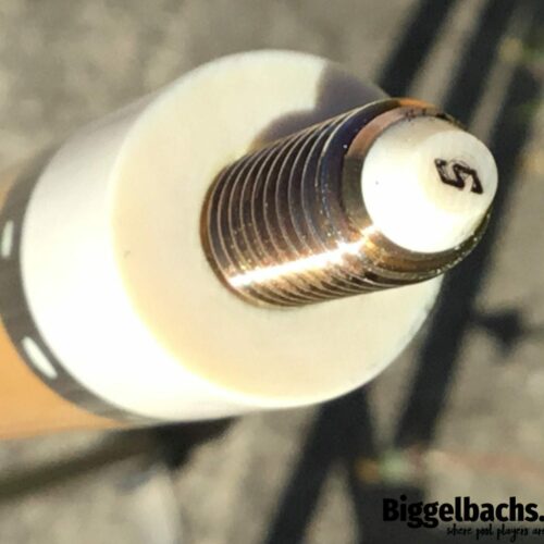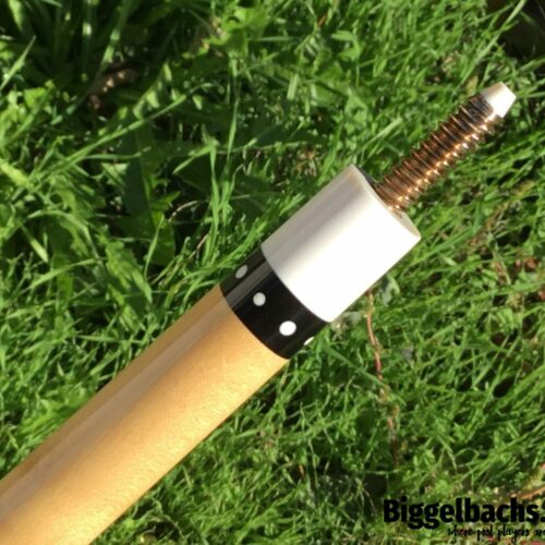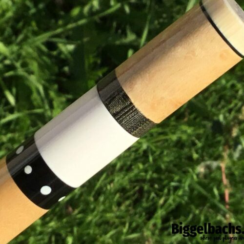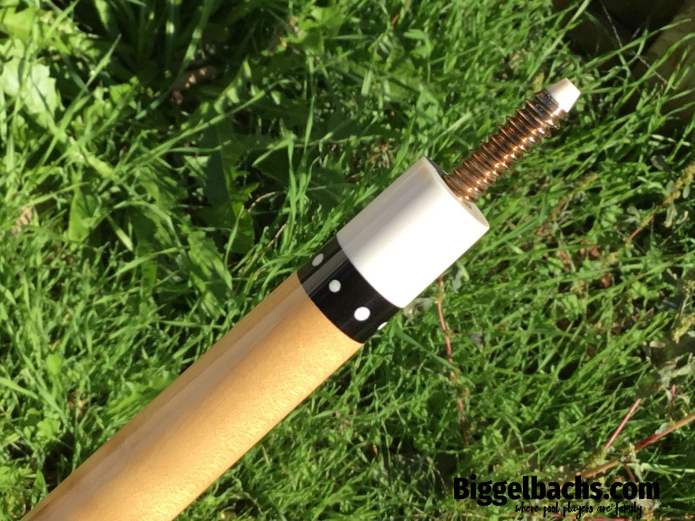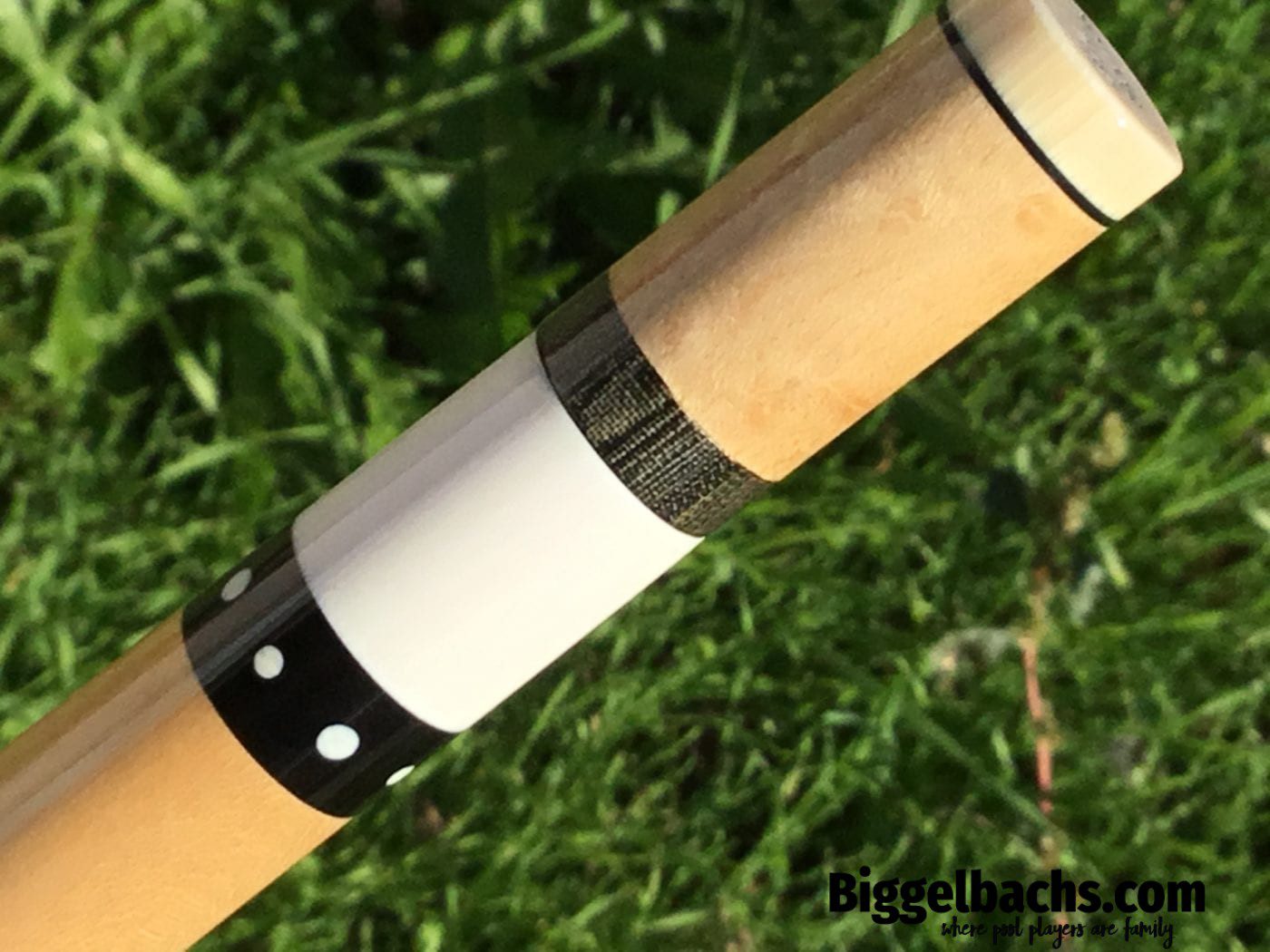 This cue is a 1915 Titlist conversion by Hall of Fame cue maker Bill Schick. The cue was built in 2008 and everything white is natural material. There is also exquisite scrimshaw work in the natural material windows; this cue is one of a kind.