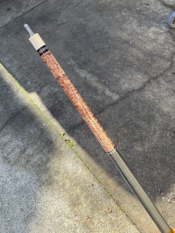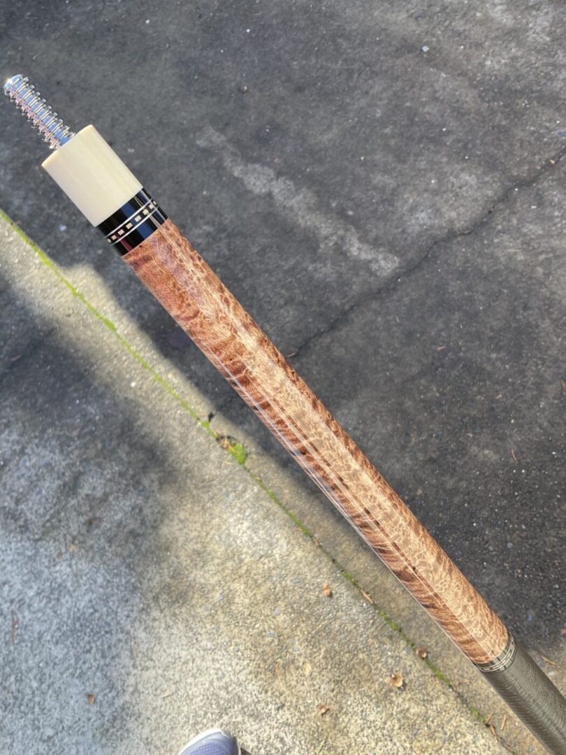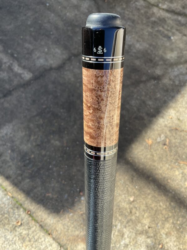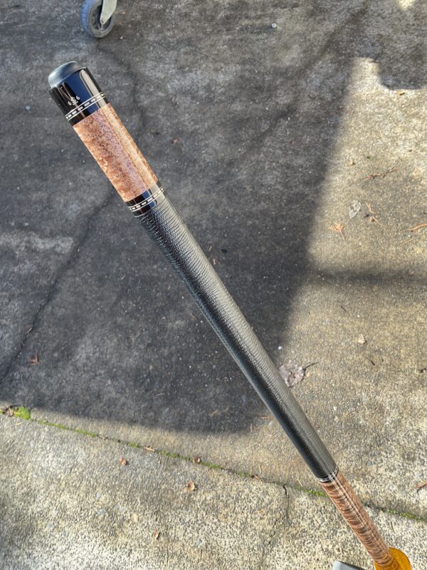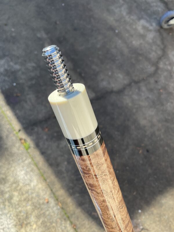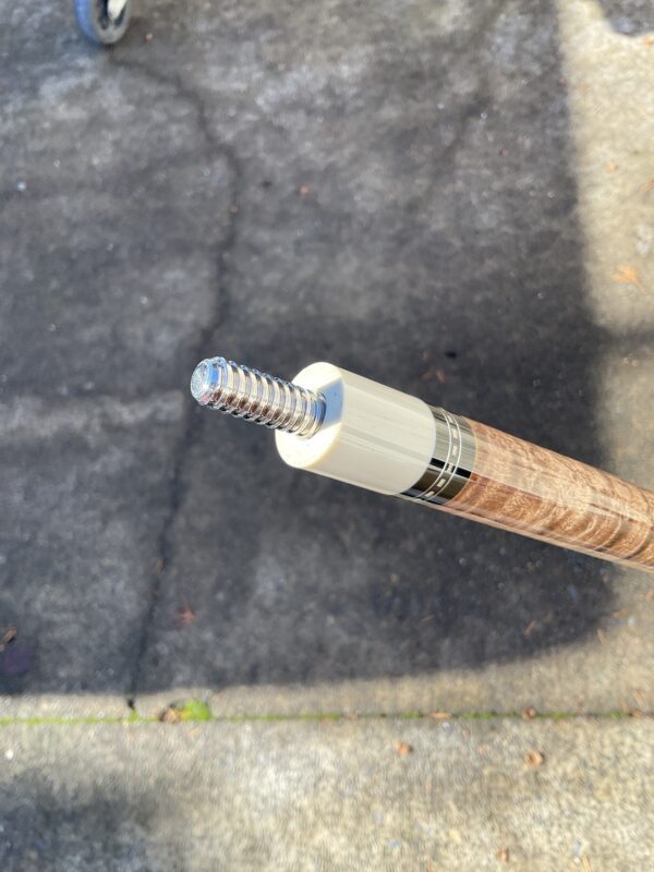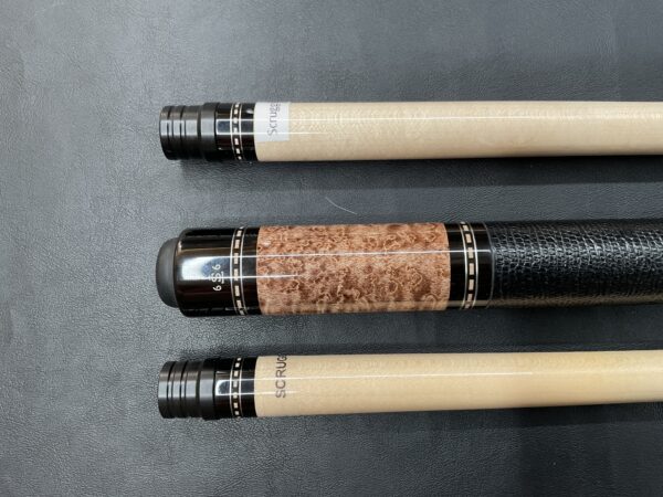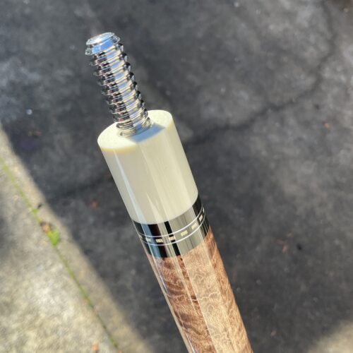 This Birdseye Maple on this Tim Scruggs pool cue is one of the most stunning of it’s kind! When you combine the beauty of the maple with the natural joint by an expert craftsman like Tim Scruggs, you get an amazing cue that not only looks great, it plays like a Scruggs!!!