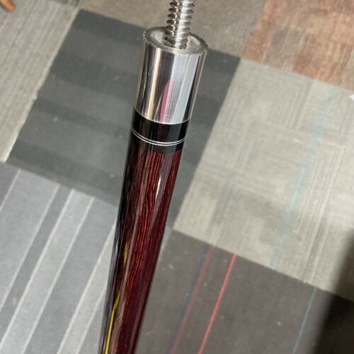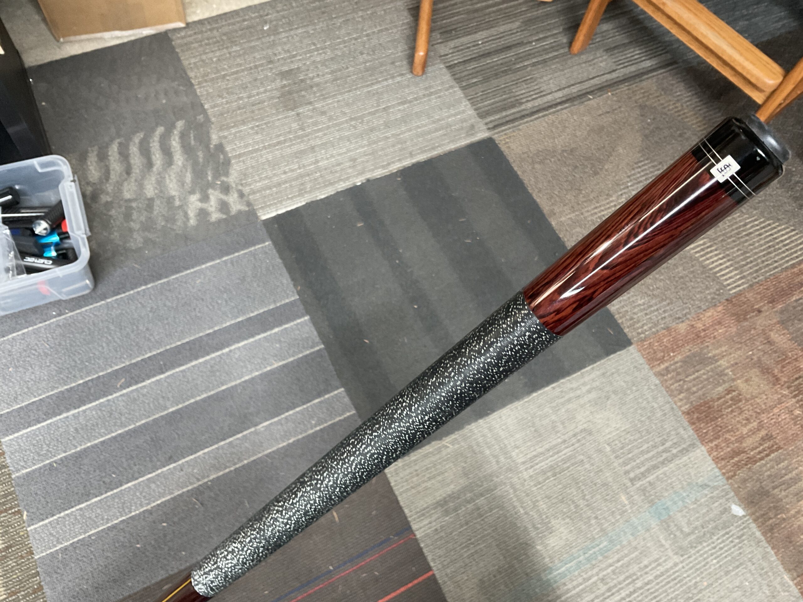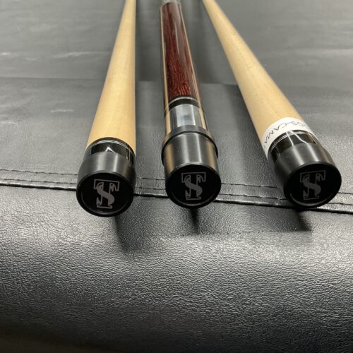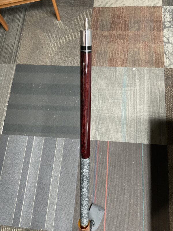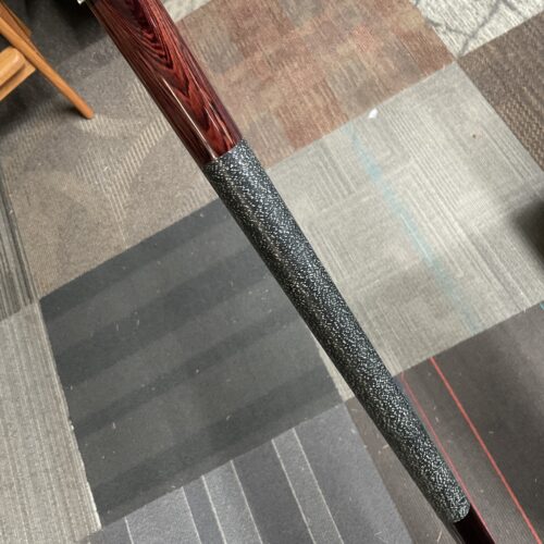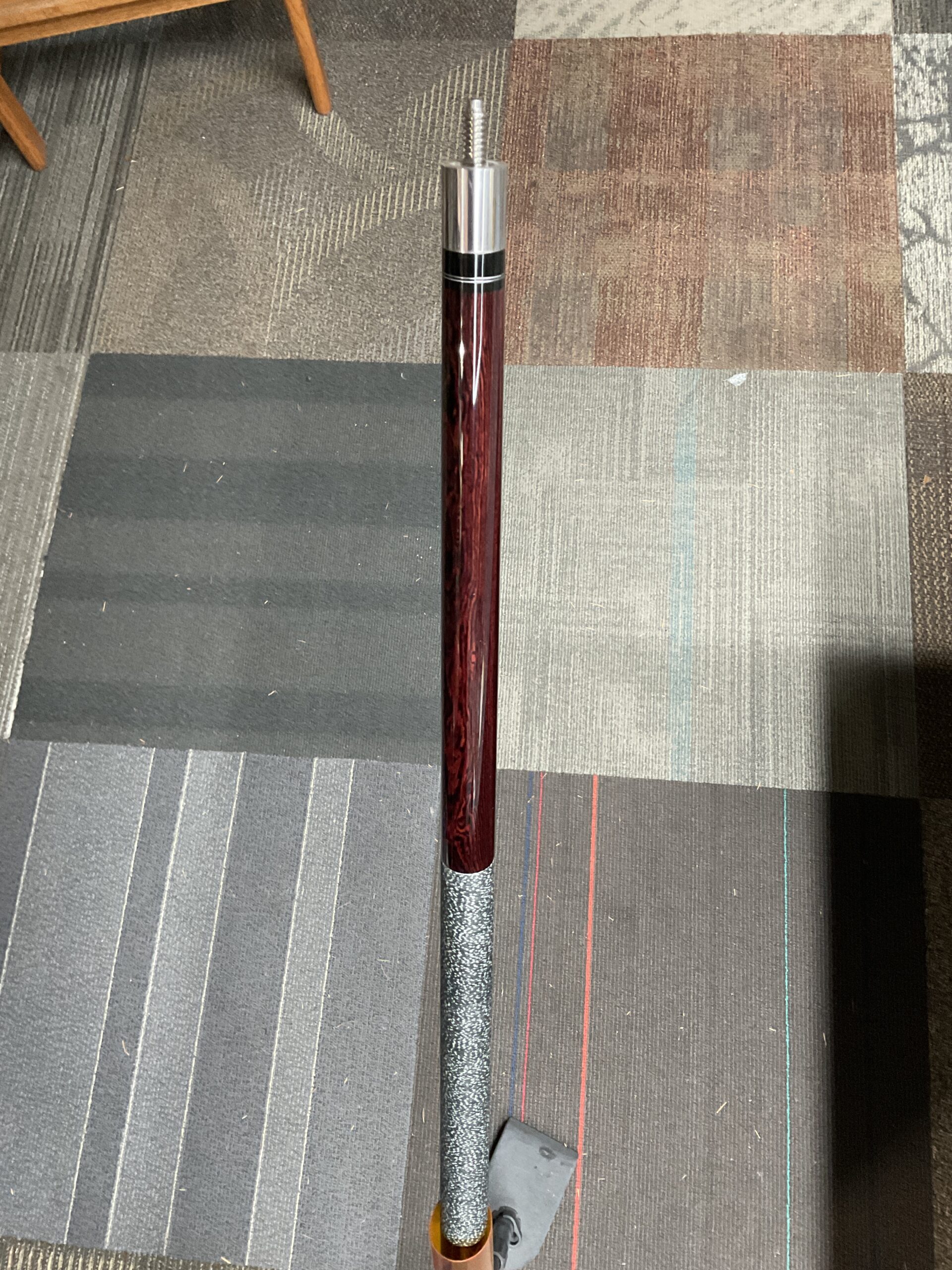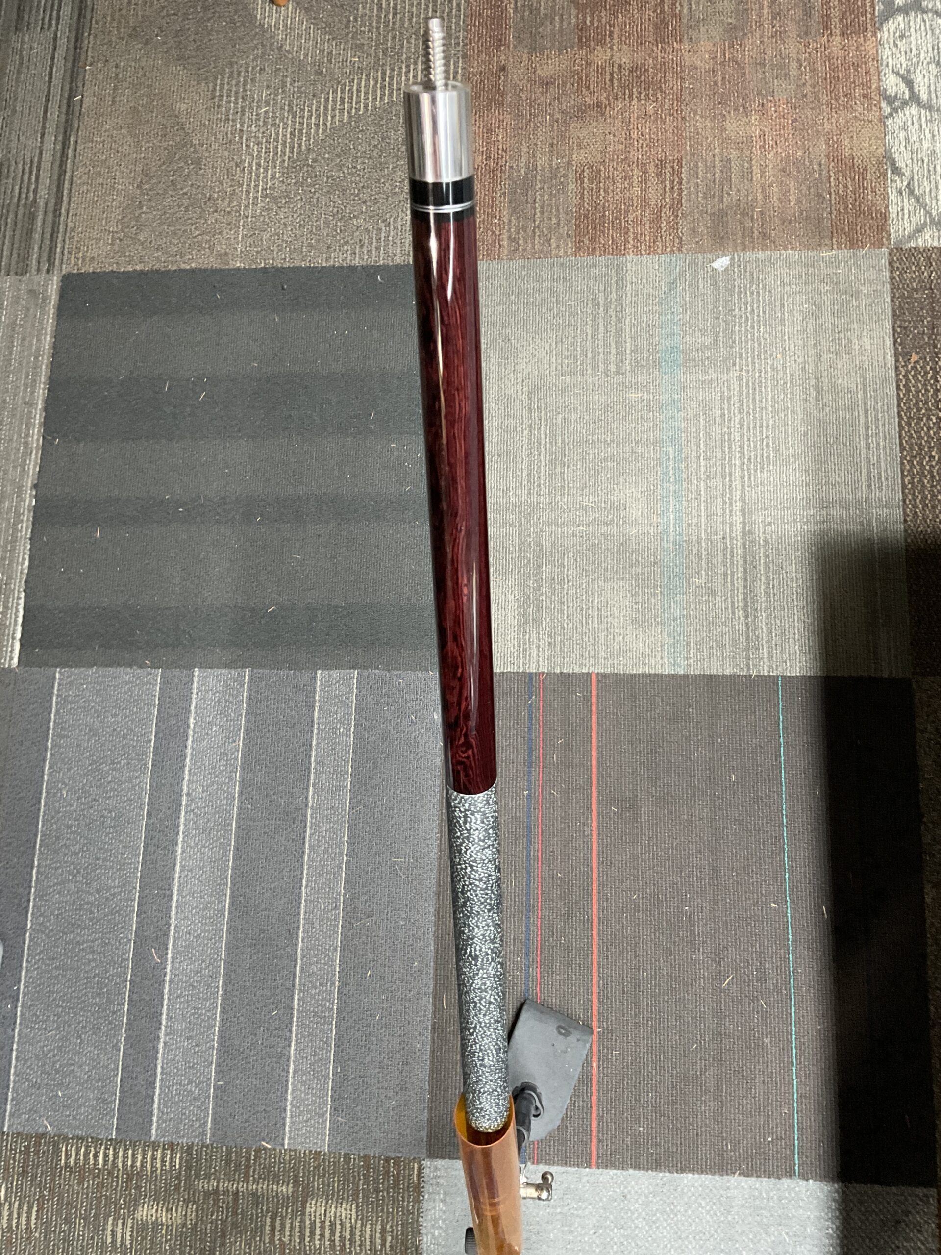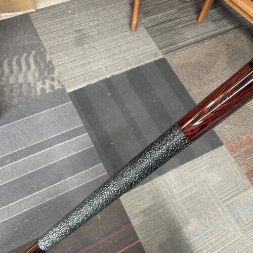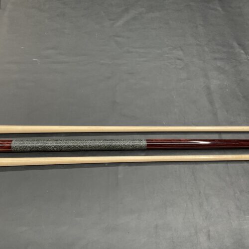 This beautiful merry widow by Tim Scruggs is hard to find in a camatillo rosewood, and of course it plays like a Scruggs! Don’t miss out on your chance to own this rare beauty by one of the great cue makers.