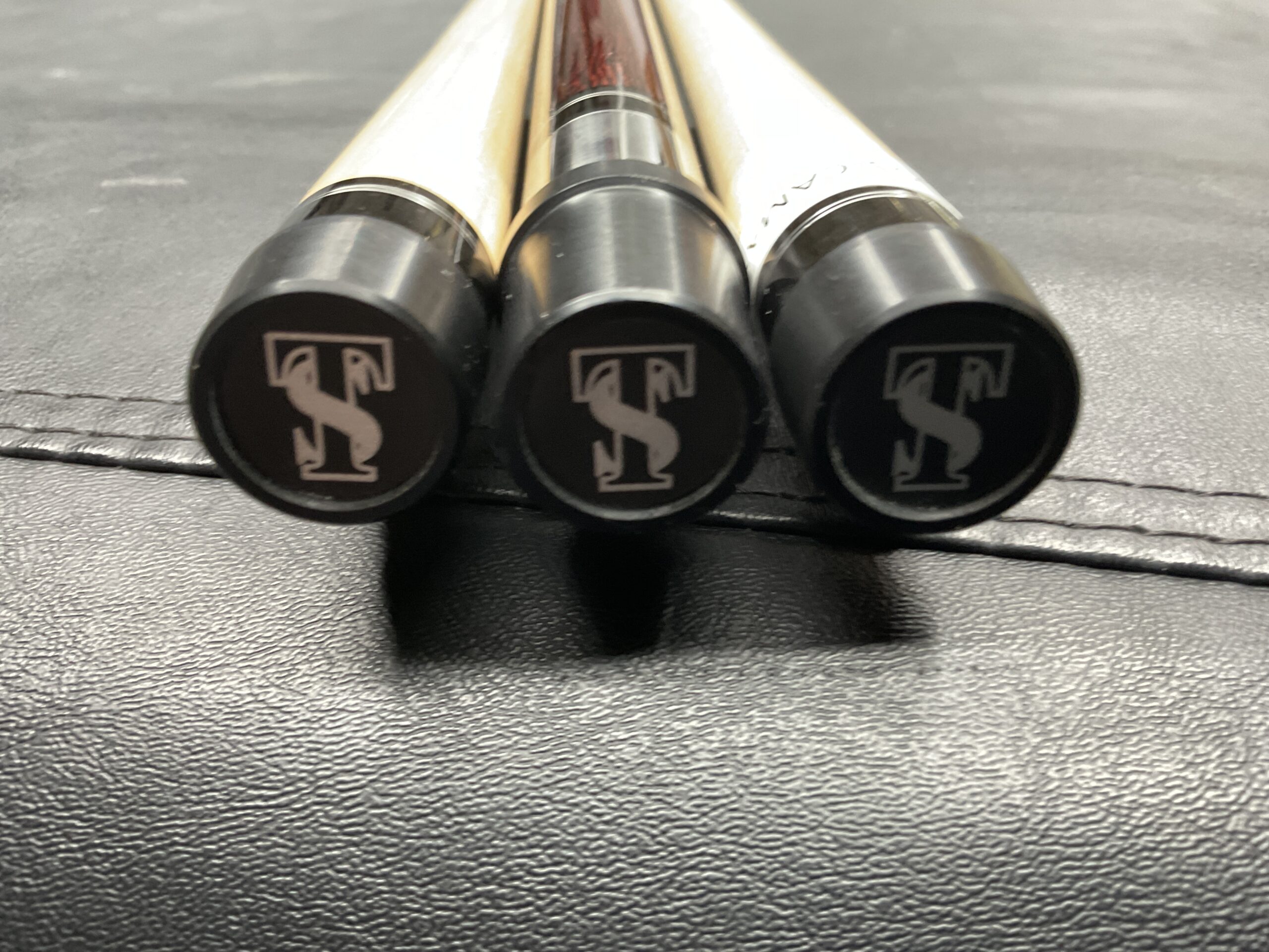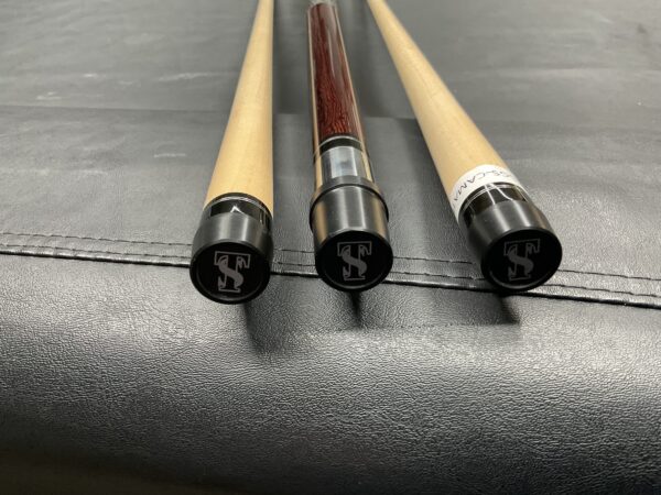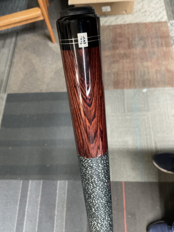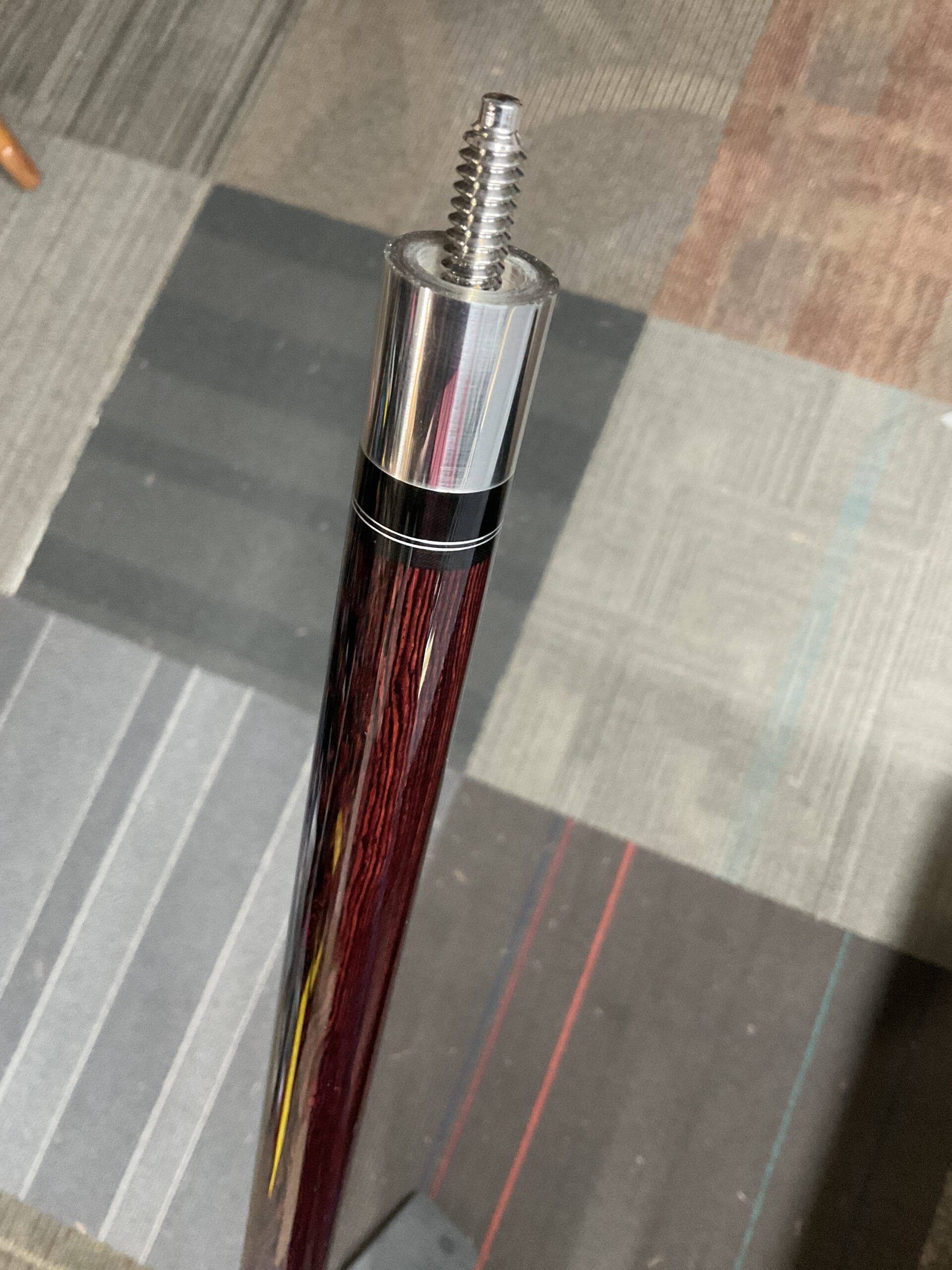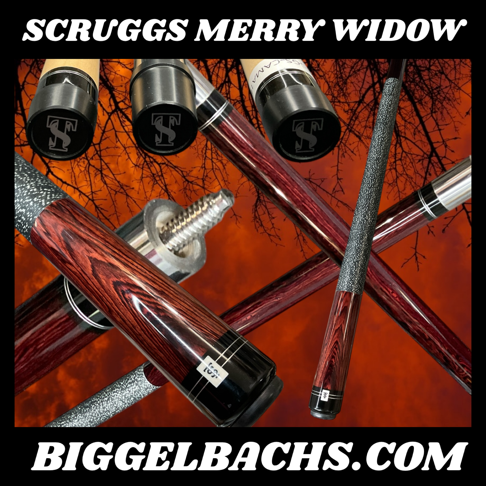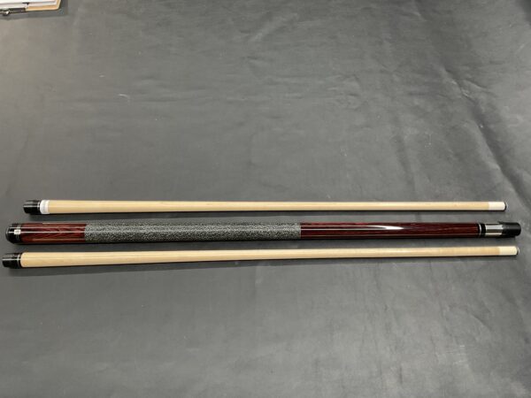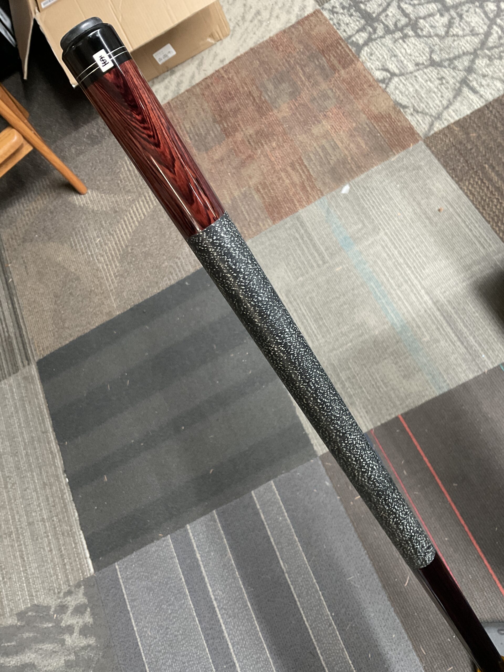 This beautiful merry widow by Tim Scruggs is hard to find in a camatillo rosewood, and of course it plays like a Scruggs! Don’t miss out on your chance to own this rare beauty by one of the great cue makers.