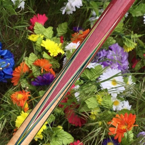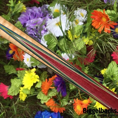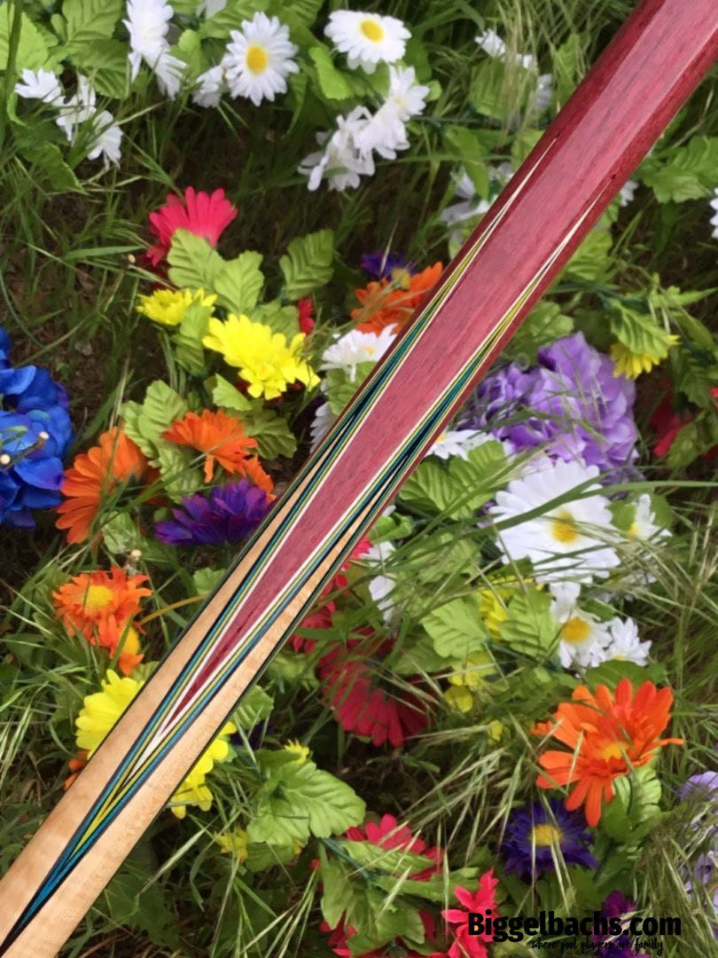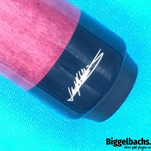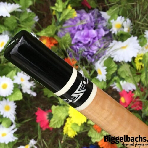 Another Cue built by Shelby Williams. This gorgeous piece of purple heart absolutely pops with vibrant color. To top off this full splice cue it has four veneers and Shelby’s signature ringwork at the joint. This is a great price on this never chalked beauty.