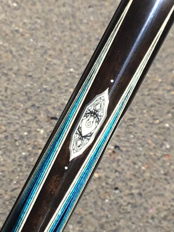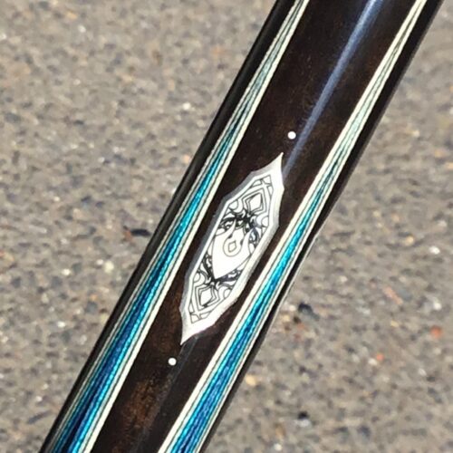 Brand new from Shelby Williams we have a build that continues to expand the artistry cue enthusiasts are raving about! Tons of silver inlays make this cue quite the standout, but the cool blue bridged points and alternating etched elforyn inlays make this cue dazzle from anywhere in the room!