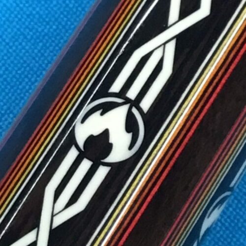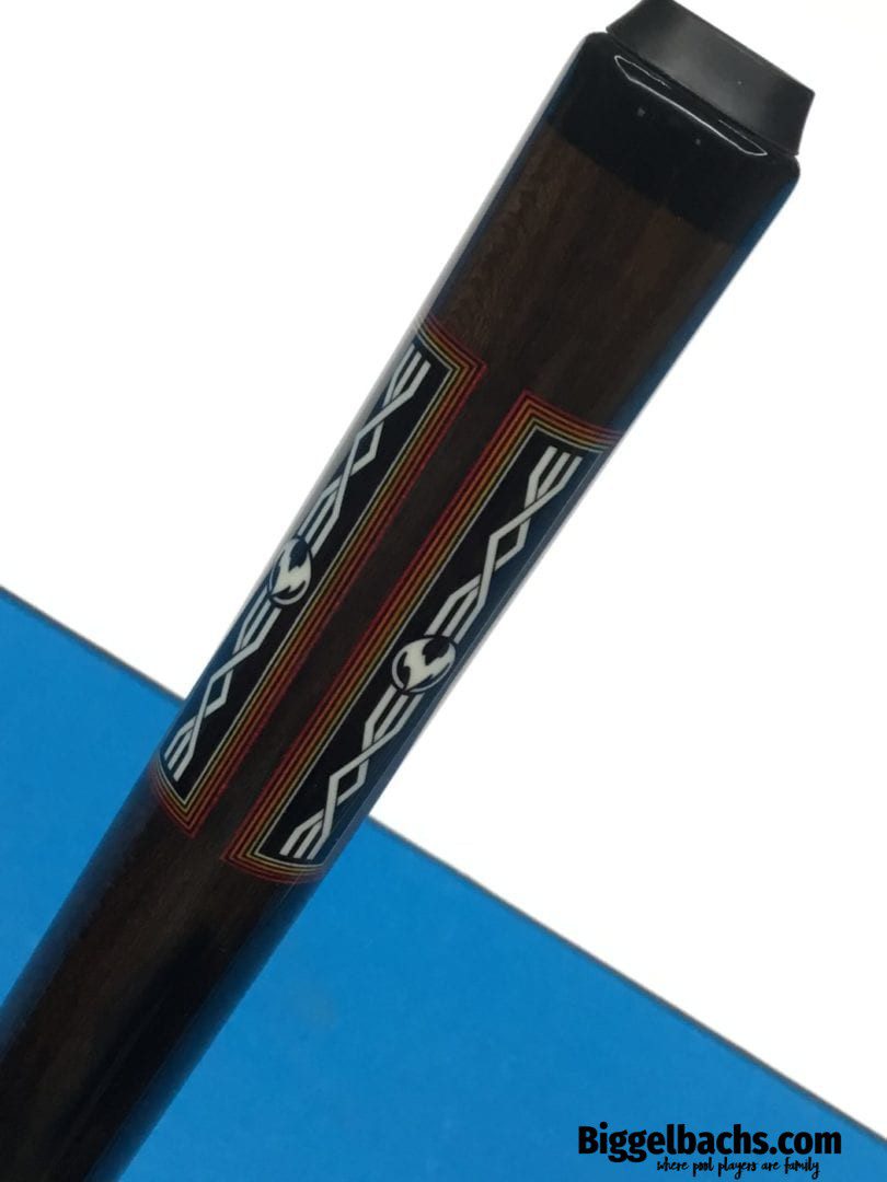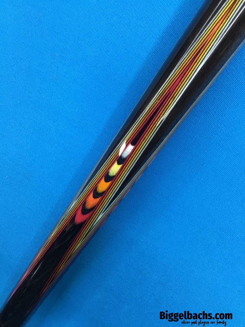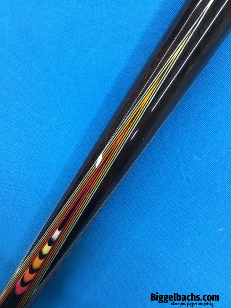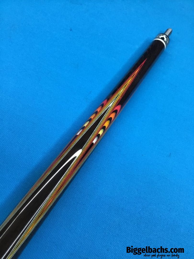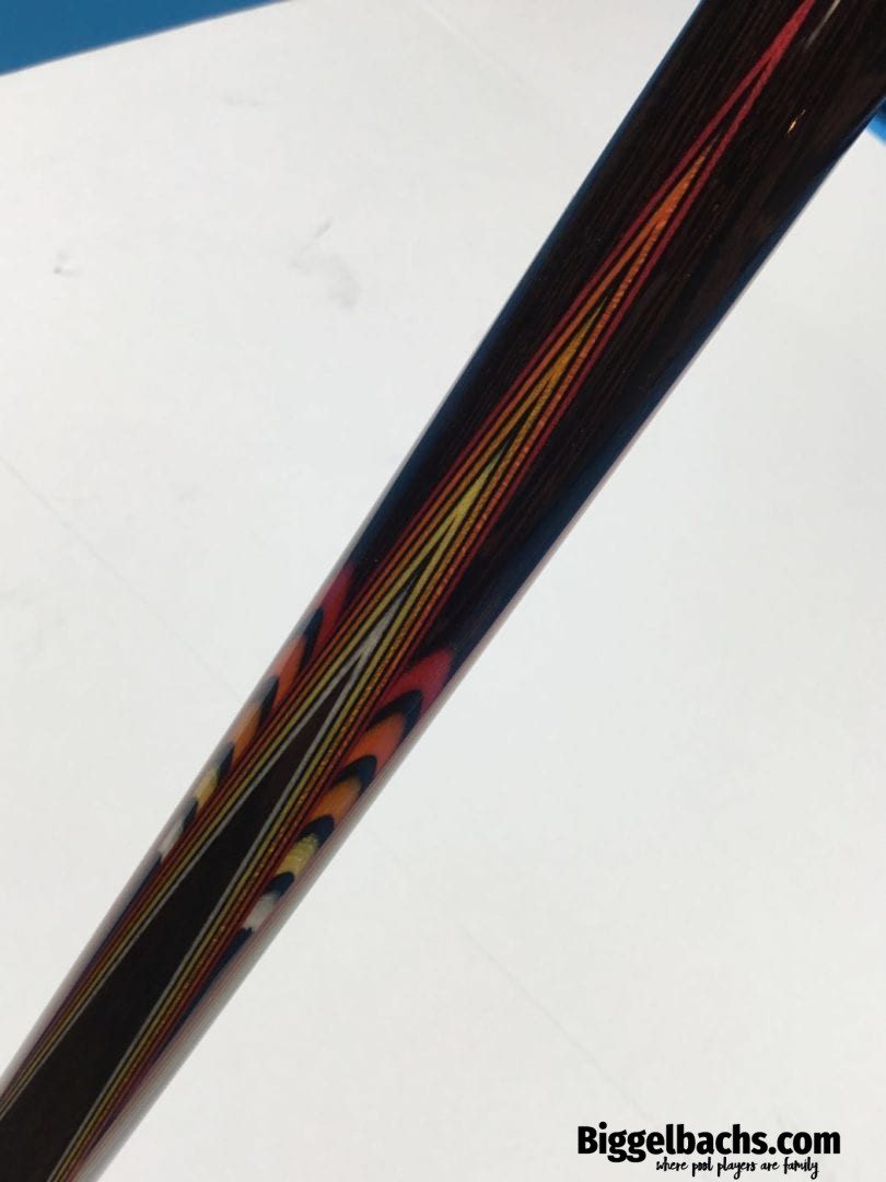 Shelby Williams is pushing cue making boundaries with this fire and flames inspired piece. Woods used in this cue are a Wenge forearm with a Ziricote handle. This flame inspired full splice cue is one of a kind and shows the creativity and imagination of Shelby Custom Cues.