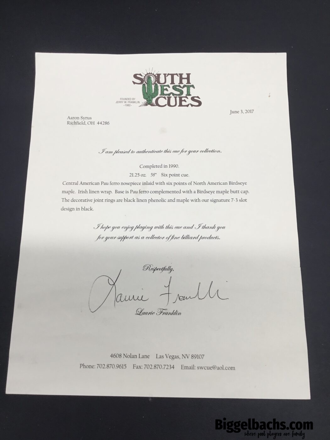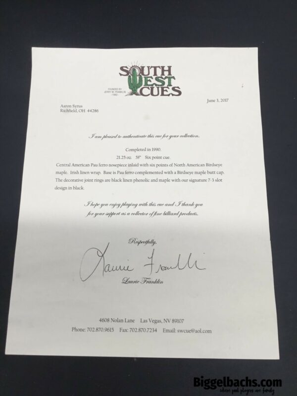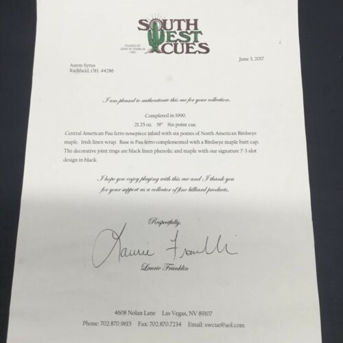 1992 Predate Franklin era Southwest. Incredible cue to be in “like new” condition.