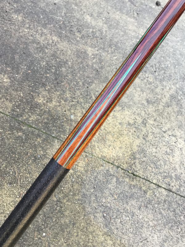 This 2016 Southwest stunner is ready to play. Cocobolo forearm with six high-low points surrounded by green veneers. If you want a player that is also a very high-demand cue, this one is for you!