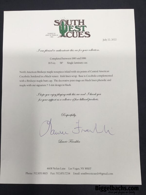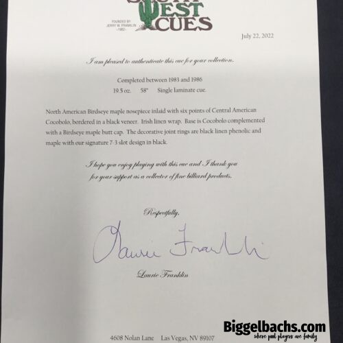 Tags: Biggelbachs, Custom Cues, custom pool cue, hand made pool cues, Treadway