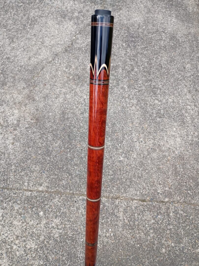 This segmented wrapless handled Sugertree from Eric Crisp is a pure delight on the eyes. It comes with one shaft and has custom joint protectors on it.