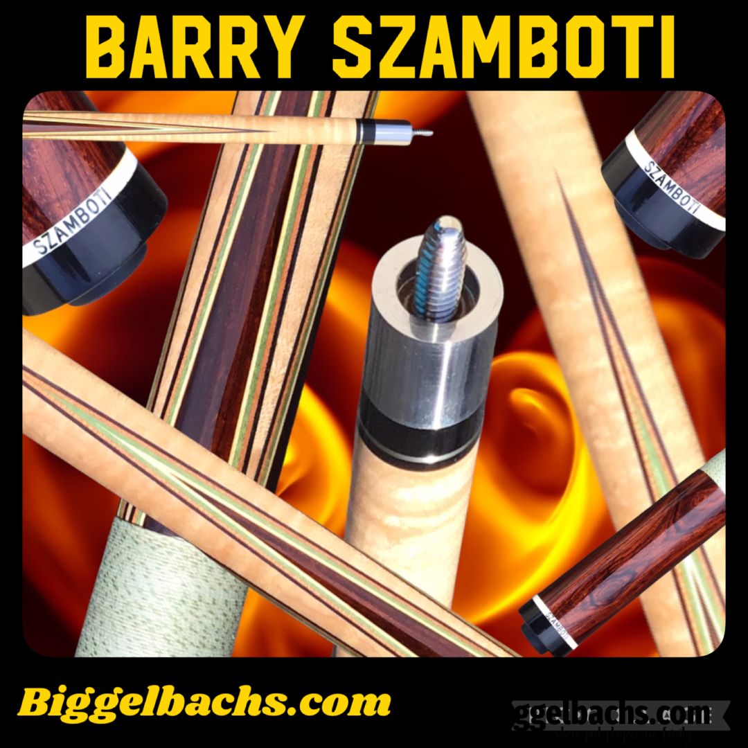 This Barry Szamboti Hoppe style cue is as collectible as they get. It’s an incredible piece of craftsmanship and art patterned after his legendary father Gus Szamboti.