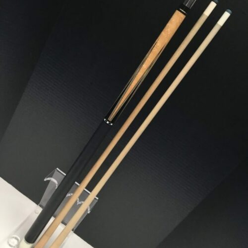 This cue built by Barry Szamboti sports a leather wrap, ebony butt and points with sharp veneers. Highly collectible, and hard to come by, this is a great looking cue constructed by a legend! The cue also comes with custom joint protectors.