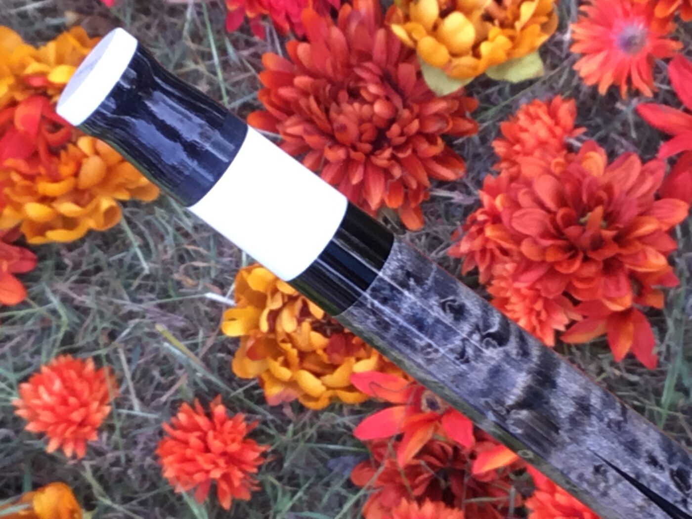This cue from master cue maker Pete Tascarella is a black beauty. Four ebony points surrounded by four bright veneers and silver diamonds. This hoppe style cue with an Ivory joint is very pleasant to look at. And if you have never shot with a Tascarella, you are missing out.