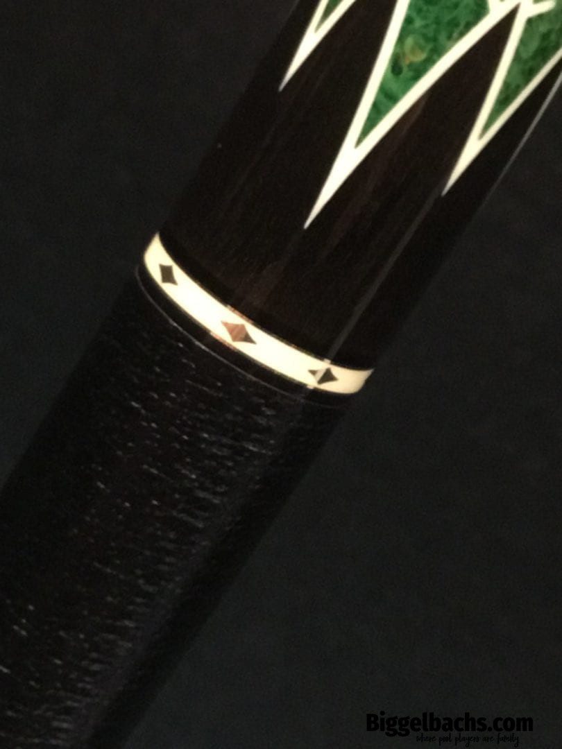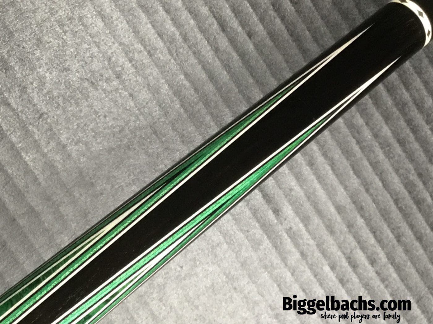 This is a new cue design by master cue maker Pete Tonkin. The cue features 84 silver inlays, green colored points and inlays. Tonkin cues are known for unique designs and masterful craftsmanship. If perfection in a cue build is possible? Then this is the cue.