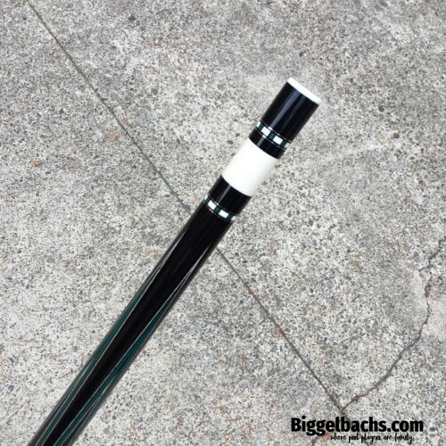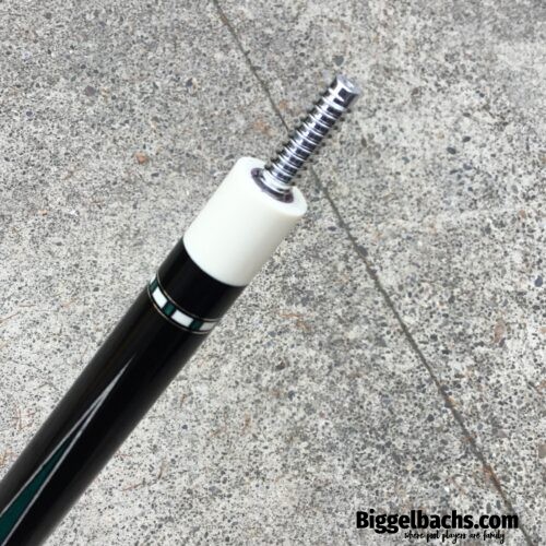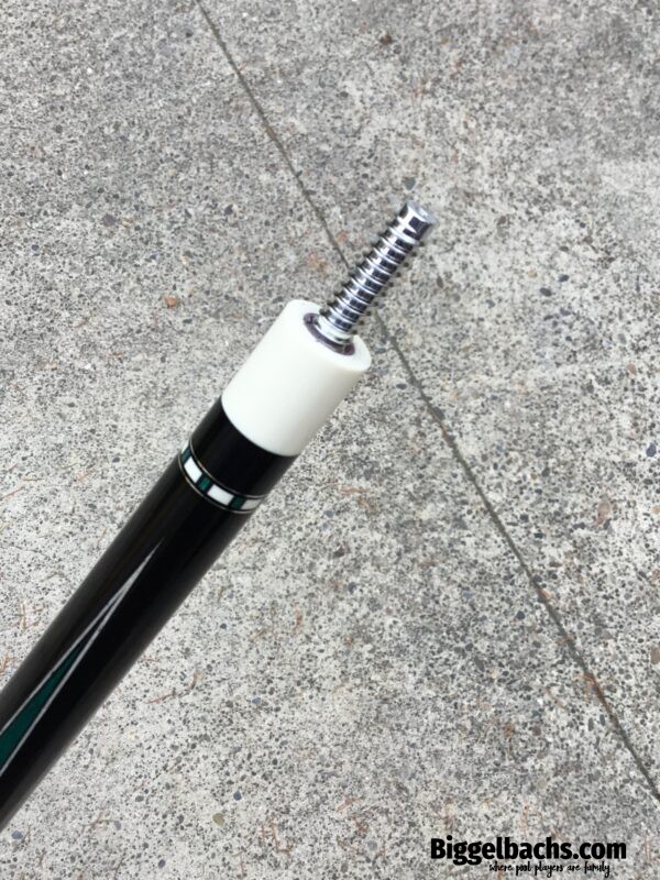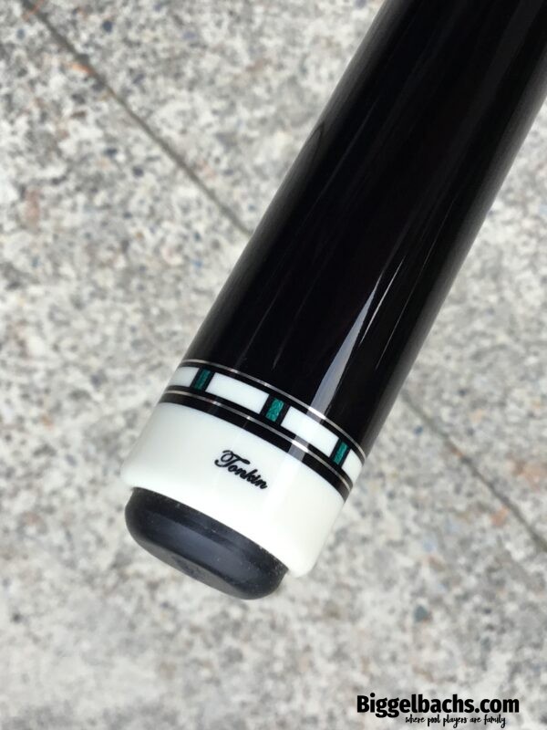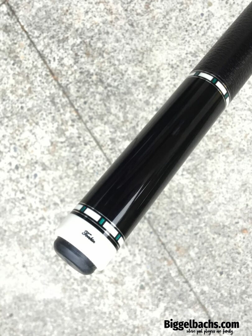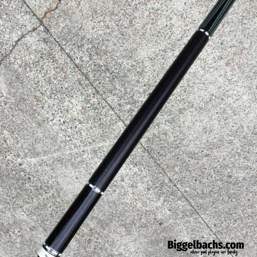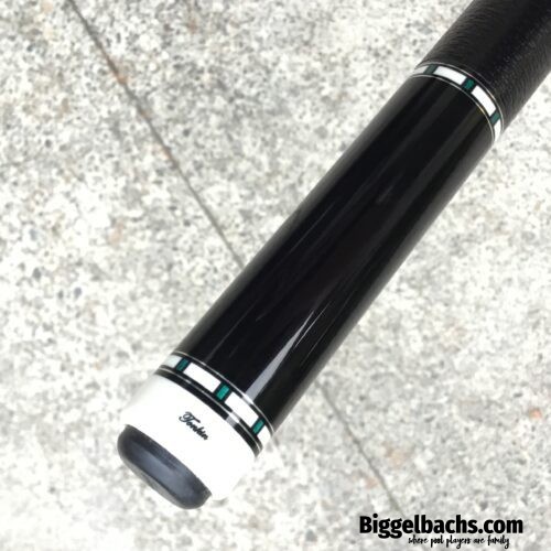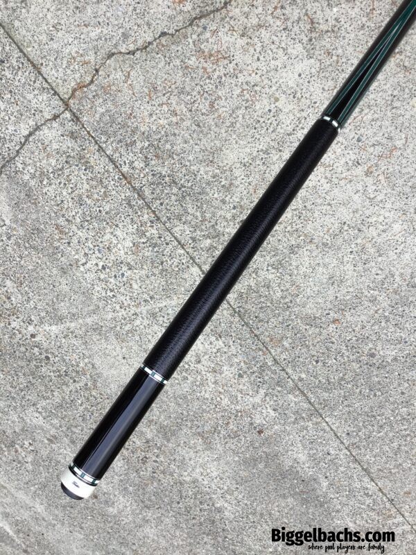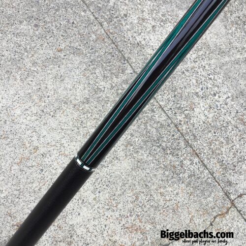 We don’t feel like the pictures do this cue justice. The green veneers on the ebony are incredibly striking and really give the cue its own 3-D effect.