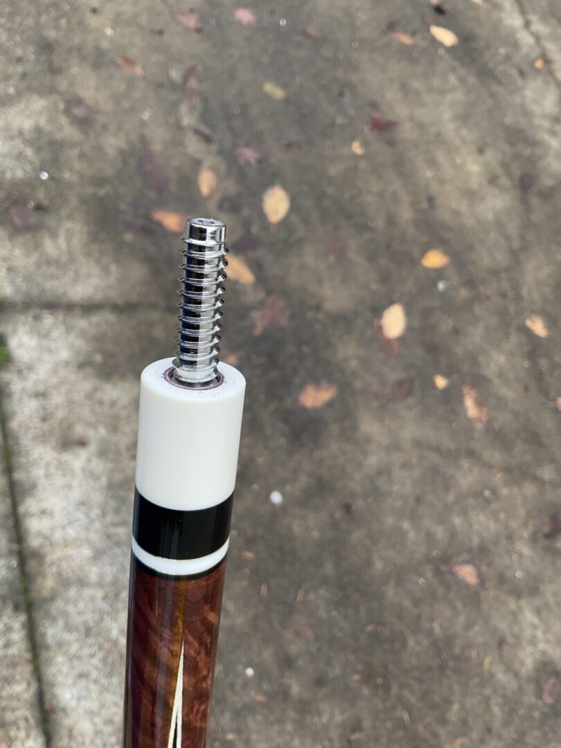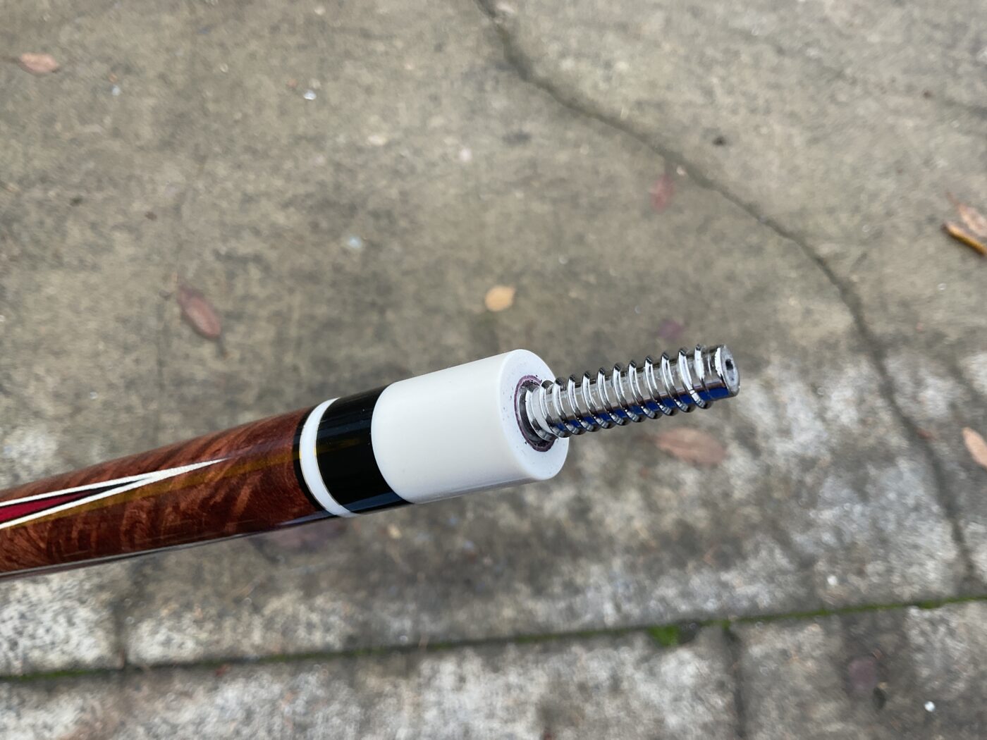 YOWSA this Tonkin is something else!! The Snow colored white points above the wrap and below the wrap make this cue really stand out. Oh, did I mention the slick looking custom joint protectors that come with it.