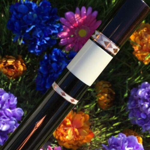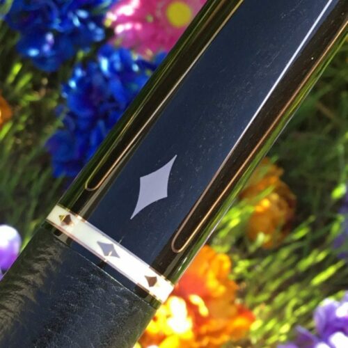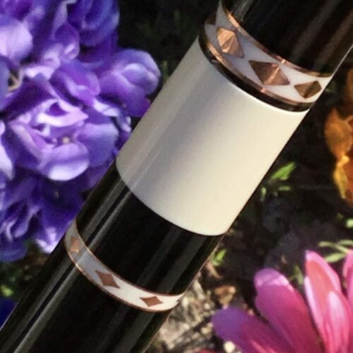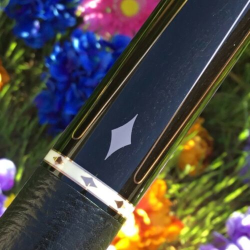 When you look at a cue and say, “Wow”, this Pete Tonkin is that kind of cue. Copper inlays everywhere and matching joint protectors. Leather wrap and ebony laced with copper ribbons and inlays. Pete knocked it out of the park on this cue build.