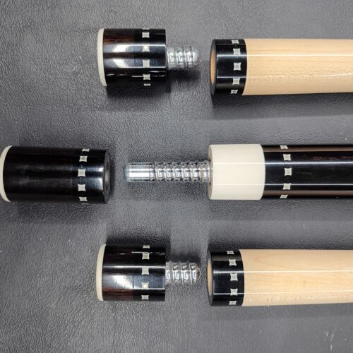 Joshua Treadway’s amazing design of this 8 point beauty with Ebony & Natural material is just stunning. The wrapless cue features two shafts and comes with custom ringwork on the cue and custom joint protectors. Don’t miss out on this rare chance to own such an amazing collectible cue.