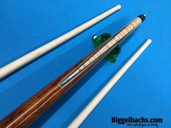 This classic Hoppe style cue built by Larry Vigus is pure beauty. Maple forearm and cocobolo handle cue with silver ribbon and abalone inlay diamonds. This subtle but elegant build is going to make a great player, and at a very affordable price point.