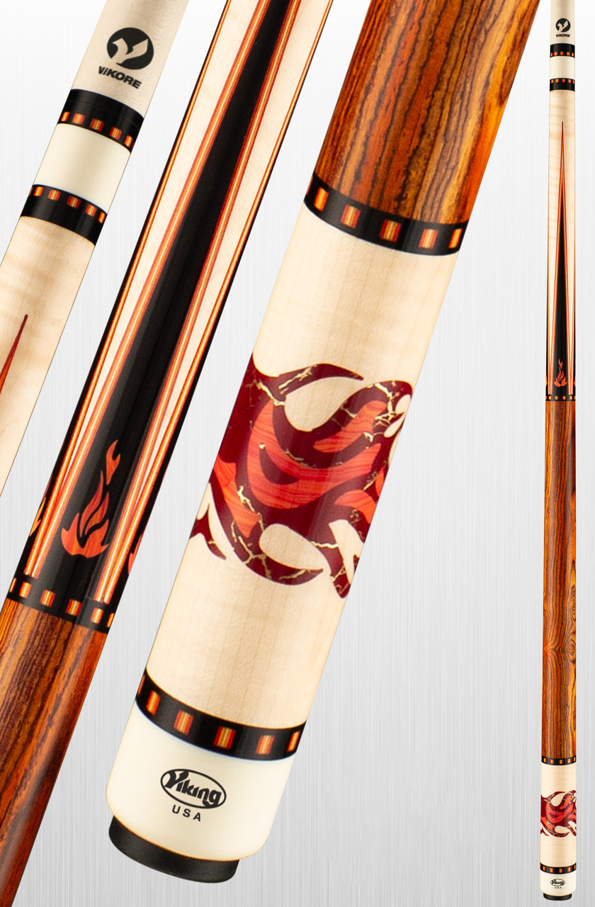 Viking and Paul F. Drexler also added the unique DOUBLE DECO RING JOINT to each of the Elemental Series of cues. This feature permits any shaft with either no ring work or a simple thin black collar to give the appearance of matching ringwork on the shaft when mated to the butt of the cue. This is especially significant when mating any carbon fiber shaft to the Elemental Series of cues.