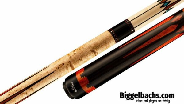 Highly-figured Birdseye Maple forearm, West African Ebony sleeve, 12 genuine Turquoise Diamond inlays, 66 total inlays, six (6) Vermillion, Ebony and genuine Turquoise points, Vermillion and Turquoise floating inlays in wrap area, Everest® laminated tip, ViKORE® Shaft, Viking SUPER ferrule, Viking Quick release joint *